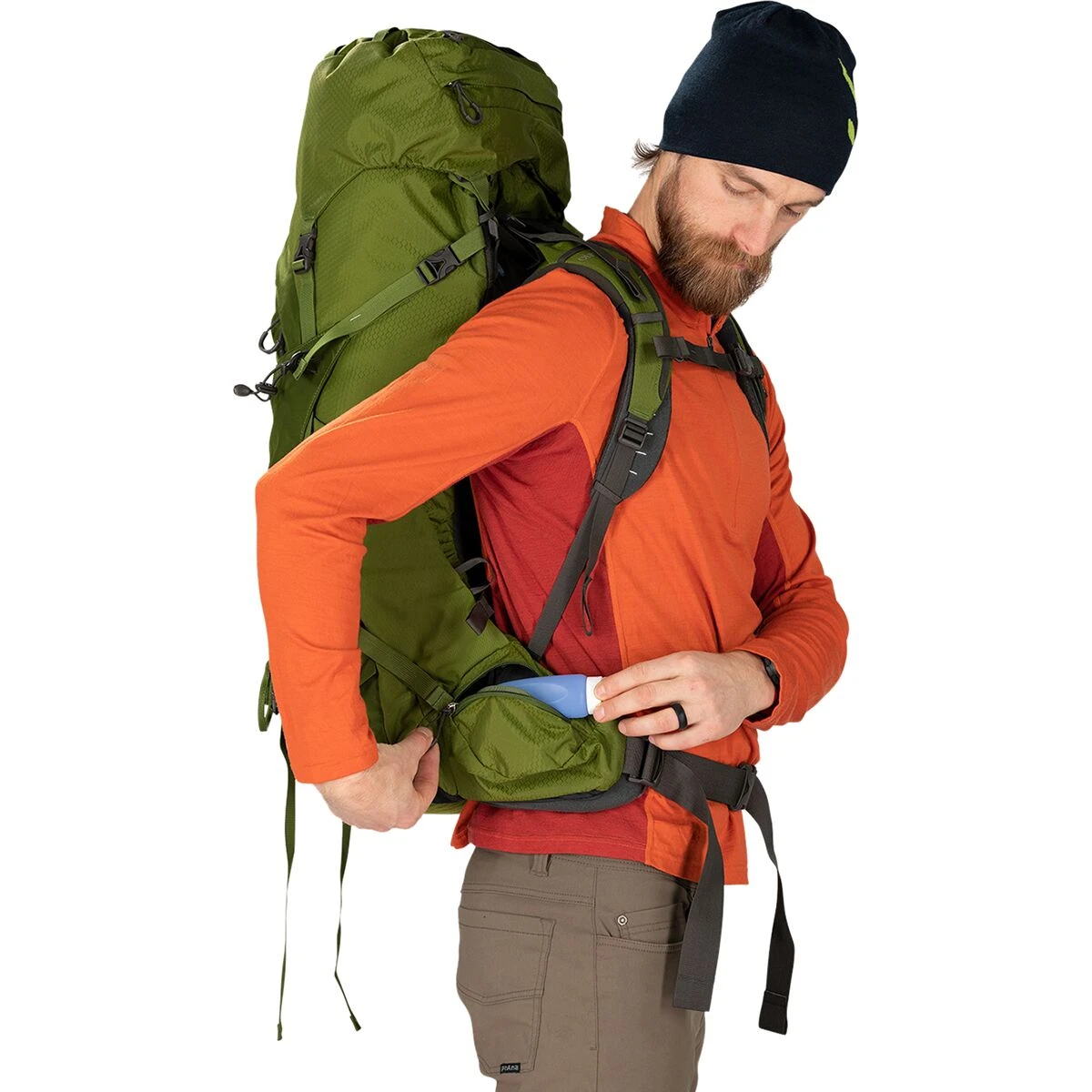 - Pocketing and straps offer storage for sleeping bags, pads, ice axes, trekking poles, water bottles, and more